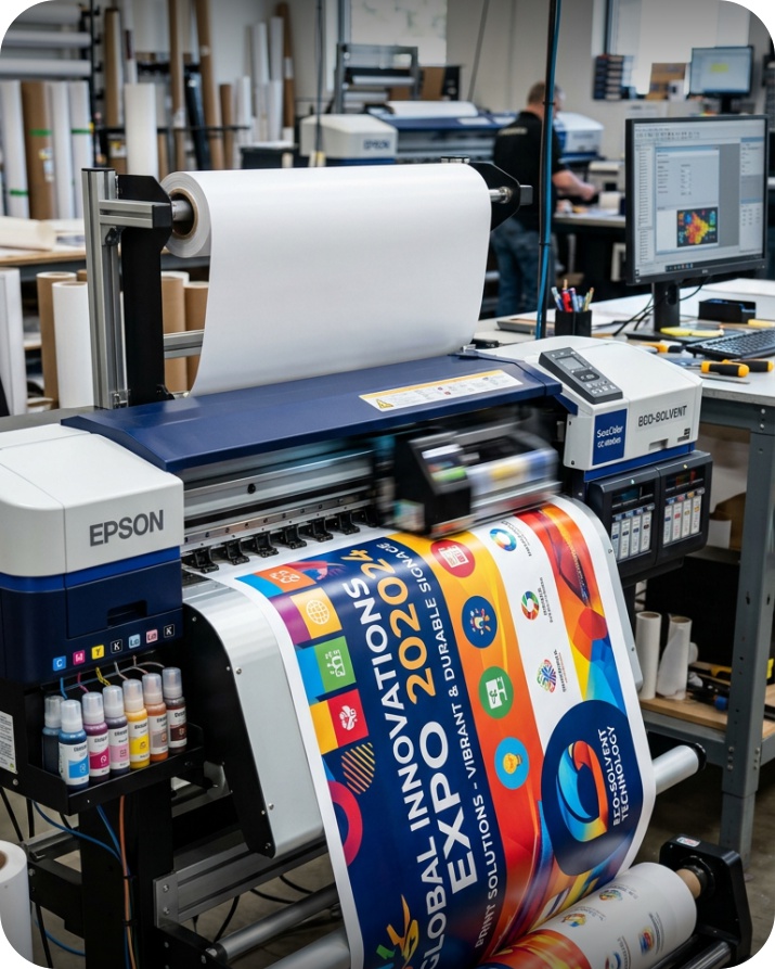 From small businesses to large-scale campaigns, our solvent printing solutions help brands create strong visual presence and effective communication.